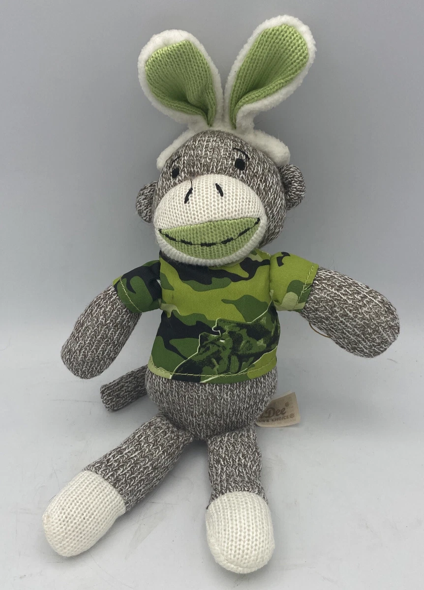Dandee Sock Monkey Green Camo Bunny Rabbit Ears Plush Doll Toy 12 034 Pre Owned Ebay